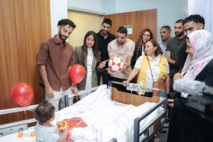 وتضمّنت الزيارة جولة داخل أقسام المستشفى للاطمئنان على الأطفال المرضى، حيث تم توزيع مجموعة من الهدايا لإدخال البهجة والسرور على قلوبهم، والذين تتراوح أعمارهم بين عام وعشرة أعوام.