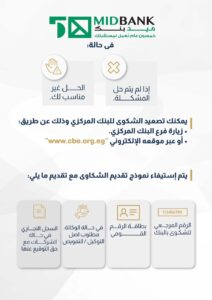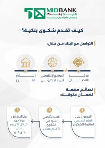 ويمكن للعملاء الاستفادة من هذه الحملة من خلال التواصل مع ميد بنك عبر الرقم 19189 أو بزيارة أقرب فرع للبنك للحصول على الإرشادات الكاملة حول تقديم الشكاوى ومتابعتها. وتعكس هذه المبادرة حرص ميد بنك على تقديم الدعم الكامل لعملائه وضمان سرعة وفاعلية التعامل مع أي تظلمات أو استفسارات مصرفية.