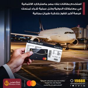 أعلن بنك مصر عن إطلاق حملة ترويجية جديدة لعملاء بطاقات بنك مصر ماستركارد الائتمانية، تتيح لهم فرصة الفوز بتذاكر طيران مجانية عند تنفيذ المعاملات الدولية خلال فترة الحملة.