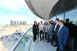 وانتقل الوزير ومرافقوه بعد ذلك إلى كمبوند “مزارين”، حيث استمع إلى عرض تفصيلي حول الموقف التنفيذي للمشروع، الذي يُقام على مساحة 700 فدان ويضم نحو 7956 وحدة سكنية متنوعة بين فيلات وشاليهات وعمارات. ويُعد المشروع أحد أبرز المجتمعات السكنية المتميزة بمدينة العلمين الجديدة، بفضل موقعه الفريد على الشاطئ الجنوبي لبحيرات العلمين وإطلالته المباشرة على الأبراج الشاطئية.