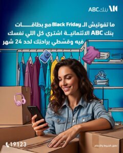 أعلن بنك ABC عن إطلاق عرض خاص بمناسبة الـ Black Friday تحت شعار “ما تفوتيش الـ Black Friday مع بطاقات بنك ABC الائتمانية”، وذلك لإتاحة تجربة تسوق مميزة وميسرة لعملائه.