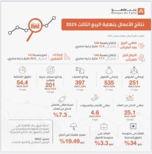 بنك القاهرة يحقق نموًا قويًا في التسعة أشهر الأولى من 2025.. صافي الربح يرتفع 46% إلى 12.6 مليار جنيه