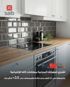 أعلن بنك Saib عن إطلاق عرض تقسيط خاص بالأجهزة المنزلية للعملاء الحاملين لبطاقات Mastercard الائتمانية، حيث يمكن للعملاء التقسيط بدون فوائد حتى 12 شهرًا، بالإضافة إلى استرجاع كاش باك يصل إلى 15%.