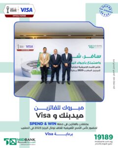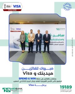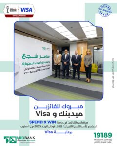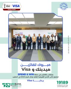 أعلن ميدبنك MIDBANK، بالتعاون مع شركة Visa، الرائدة عالميًا في المدفوعات الرقمية، عن اختيار الفائزين ضمن حملة “Spend & Win”، التي أطلقها البنك ضمن جهوده لتقديم تجارب مصرفية مبتكرة ومكافآت قيمة لعملائه.