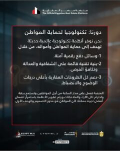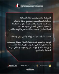 وأوضحت المنصة أنها تعمل على حماية أموال المواطنين، ودعم الطروحات العقارية بأقصى درجات الوضوح والإفصاح، بما يسهم في ترسيخ سوق عقاري منضبط وآمن، قائم على مبادئ العدالة وتكافؤ الفرص بين جميع الأطراف.
