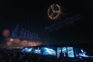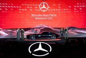 المفاجأة الأولى كانت عرضاً حصرياً لمفهوم “فيجن أيكونيك”، وهو أحدث ابتكارات مرسيدس-بنز المستلهمة من العصر الذهبي لتصميم السيارات في ثلاثينيات القرن الماضي، ويجسد جوهر العلامة التجارية بكل تفاصيله. أما المفاجأة الثانية فكانت الكشف عن المخطط العام للمجمع، الذي يضم اثني عشر برجاً متناسقاً من الناحية المعمارية، وتمت إضاءتها بعرض ليزري يعكس محيط الأبراج، ليُختتم الحفل بعرض ألعاب نارية ضخم يرمز إلى حجم الطموح والرؤية المستقبلية للمشروع.