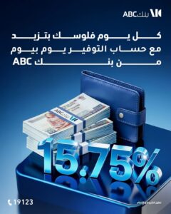 أعلن بنك ABC عن إطلاق حساب التوفير الجديد “يوم بيوم”، والذي يتيح للعملاء الاستفادة من مزايا متعددة تشمل عائدًا يوميًا يُصرف شهريًا، مع إمكانية البدء بمبلغ بسيط يصل إلى 10 آلاف جنيه.