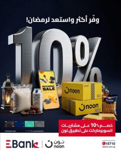 كما يمكن للعملاء الاطلاع على مزيد من التفاصيل حول شروط وأحكام العرض من خلال الرابط التالي: https://ebank.com.eg/NoonCampaign، أو التواصل مع مركز خدمة العملاء على الرقم 16710.
