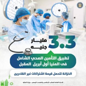 وأكد أحمد كجوك أن هناك ٣,٣ مليار جنيه لتبكير دخول التأمين الصحي الشامل لمحافظة المنيا، اعتبارًا من أول شهر أبريل المقبل، على أن تتحمل الخزانة قيمة اشتراكات غير القادرين بهذه المنظومة المتطورة بالمنيا.