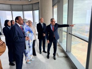 كما شملت الجولة زيارة البرج الأيقوني بمنطقة الأعمال المركزية، حيث اصطحب المهندس خالد عباس رئيس الوزراء السوداني إلى الطابق الرابع والسبعين، وقدم شرحًا مستفيضًا حول مكونات منطقة الأعمال المركزية، التي تضم مجموعة من الأبراج متعددة الاستخدامات، وفي مقدمتها البرج الأيقوني باعتباره الأعلى في إفريقيا، وما يمثله من رمز لقدرة الدولة المصرية على تنفيذ مشروعات قومية عملاقة وفق أعلى المعايير الهندسية العالمية وفي مدد زمنية قياسية.